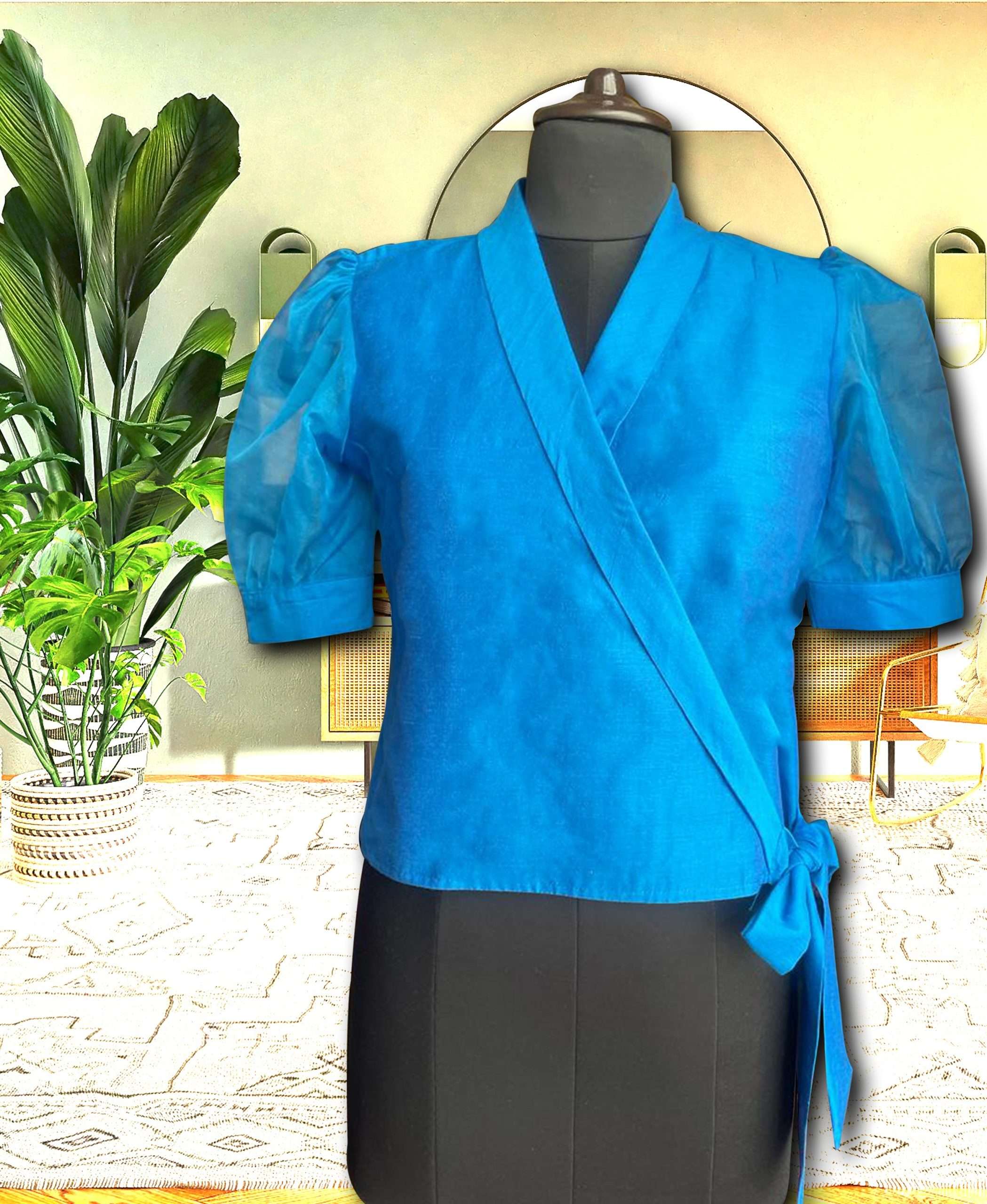 This cotton silk top is a must have in summers. Sleeves are made of Organza fabric.