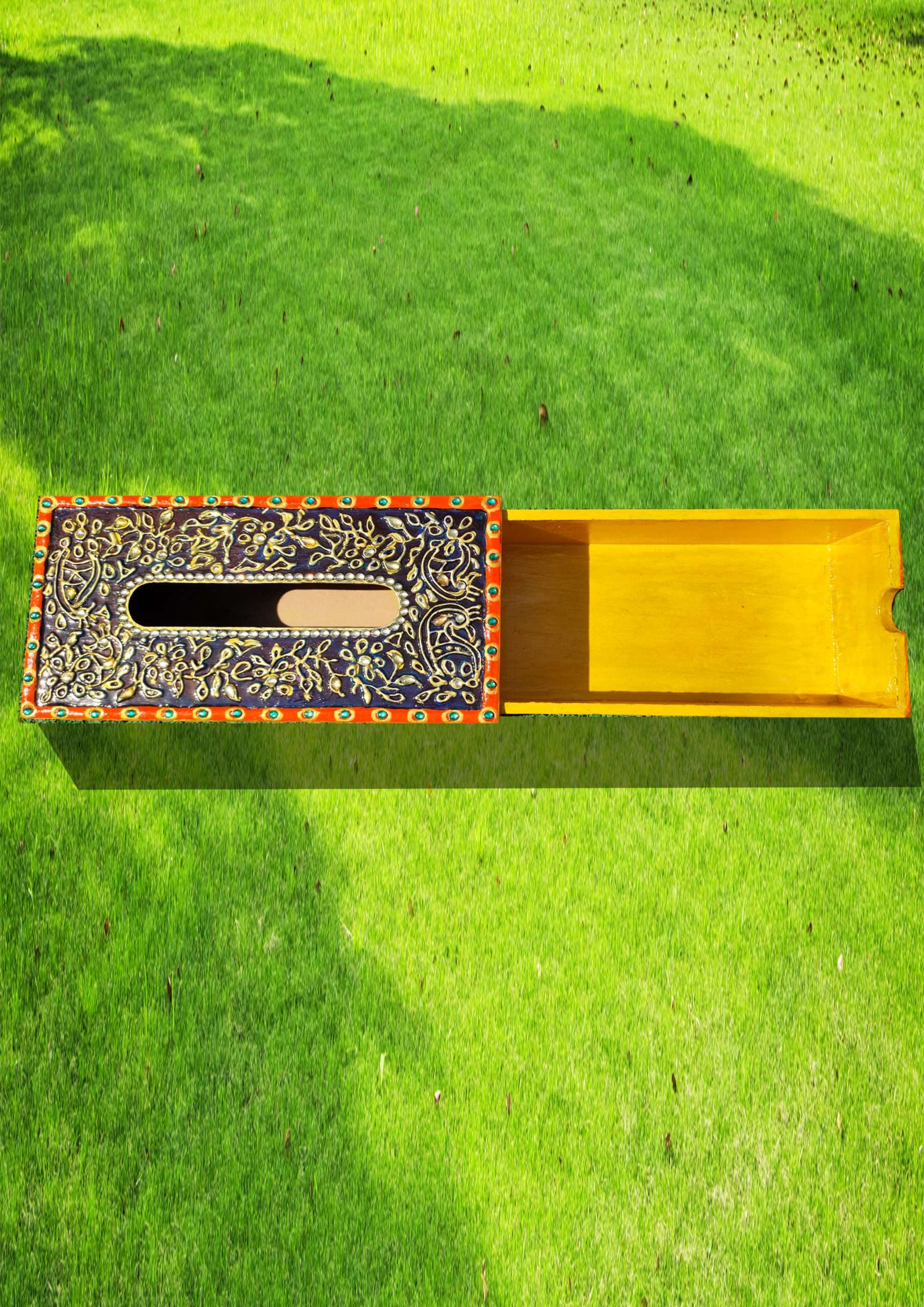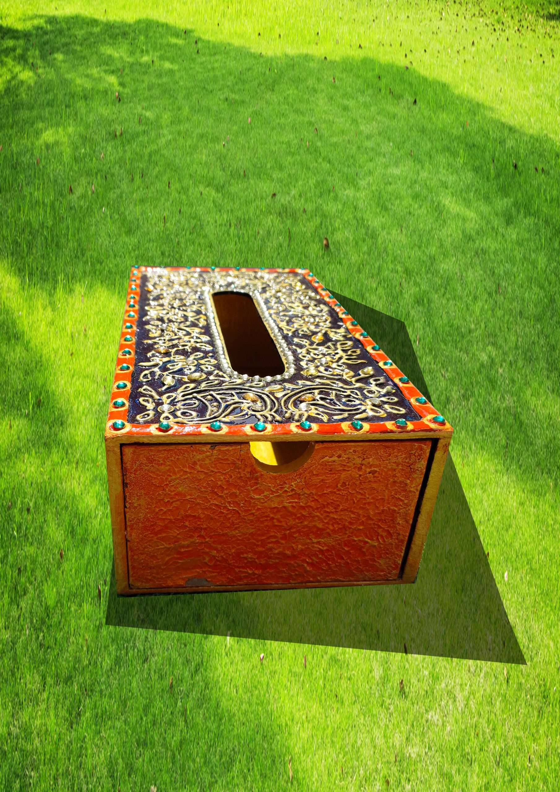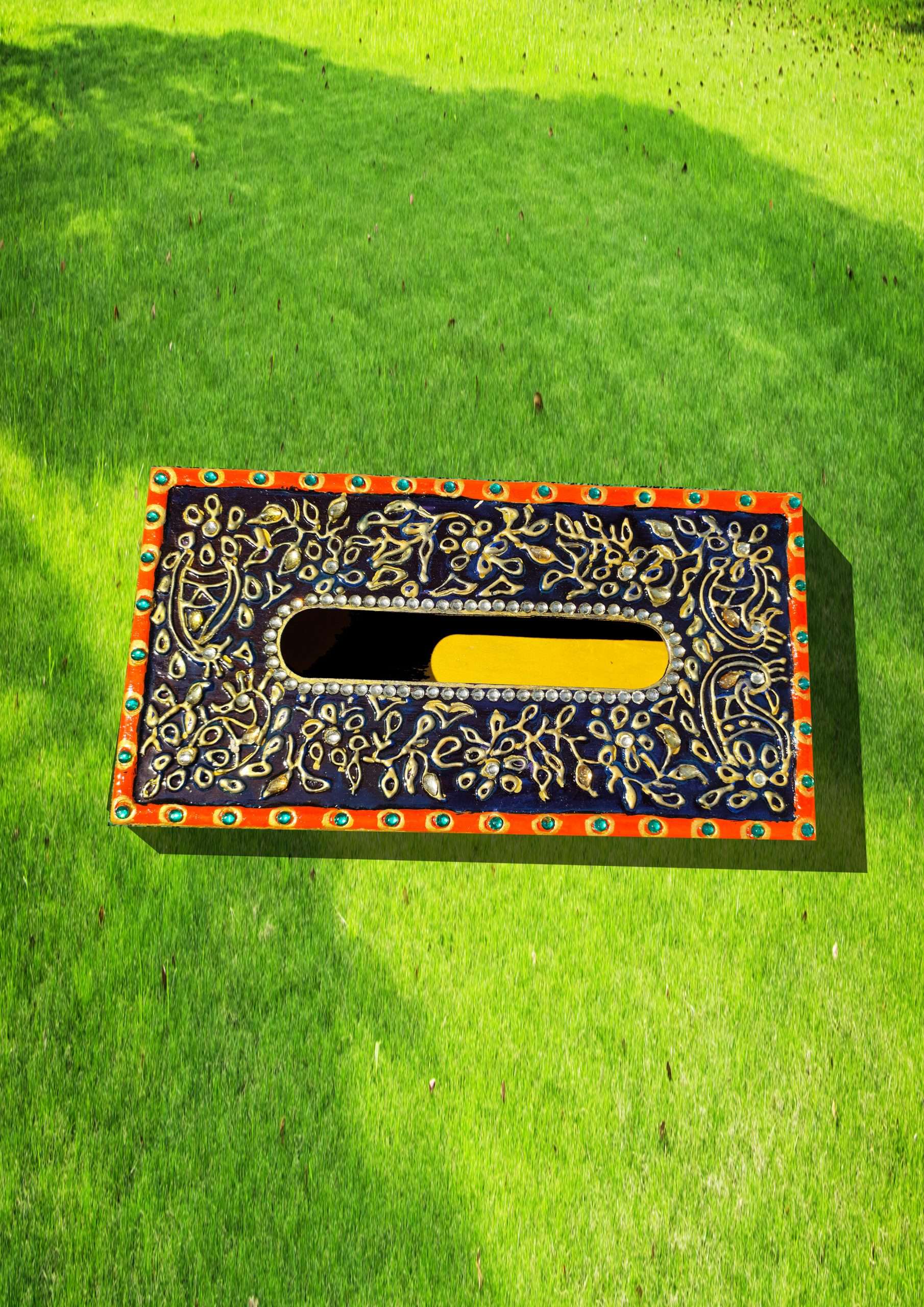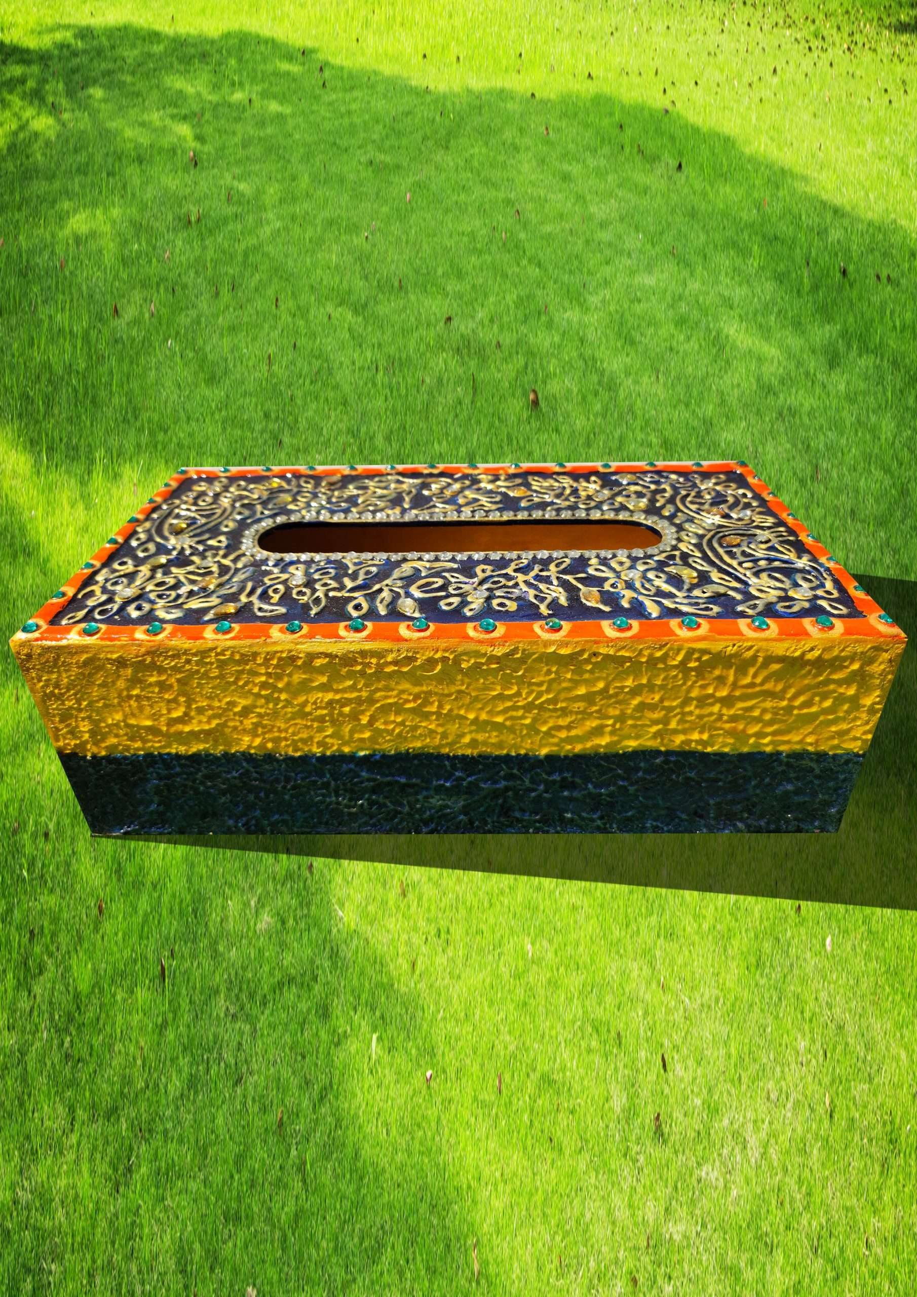 Tissue box made of papermache is hand crafted by our in house Artisens.